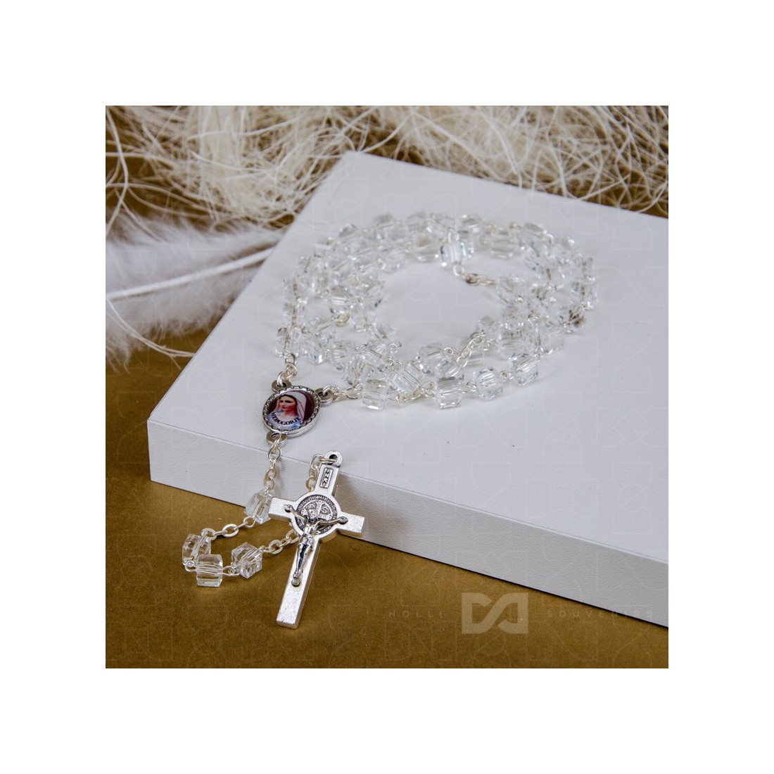Krunica staklena - Gospa/križ Benedikt - 21-407
