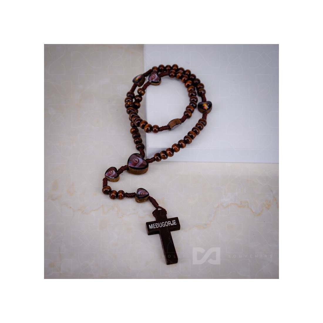Krunica drvena srce Gospa/Milosrdni Isus na špagi - 21-173