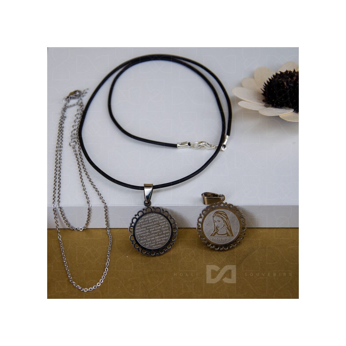 Lančić čelik Gospa - molitva Zdravo Marijo( na kaučuku ili lanac od nehrđajućeg čelika ) ENGLESKI jezik - 23-62
