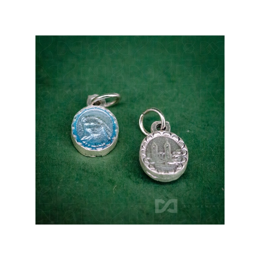 Medaljica Gospa, srebrno-plava s...