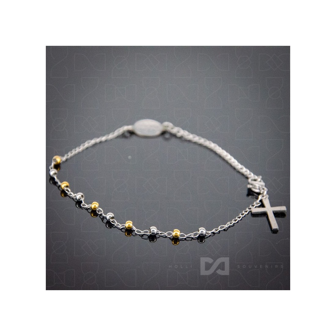 Narukvica čelik - Gospa/križić, zlatno-srebrna - 36-106B
