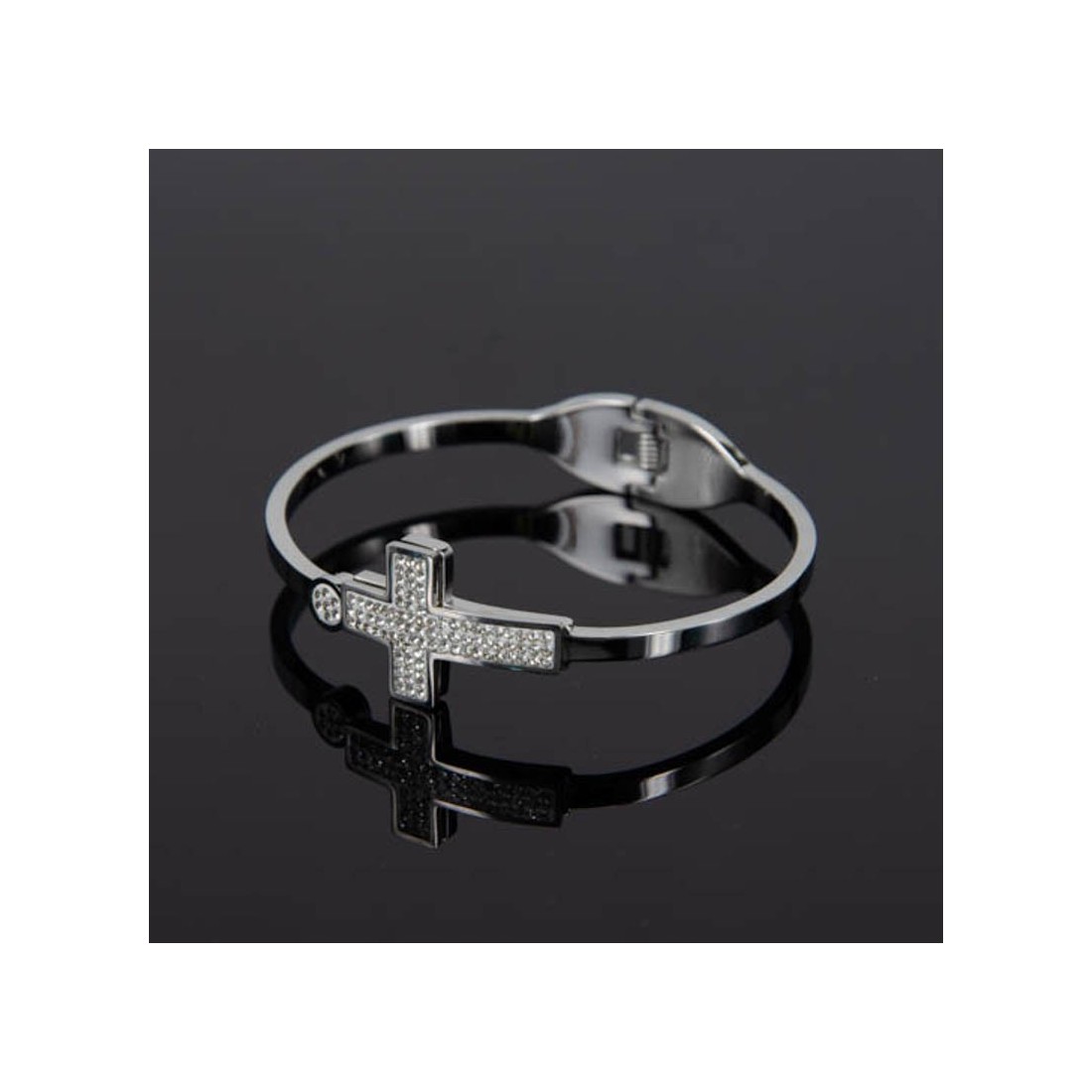 Narukvica čelik - cirkonski križ, srebrna - 36-110D