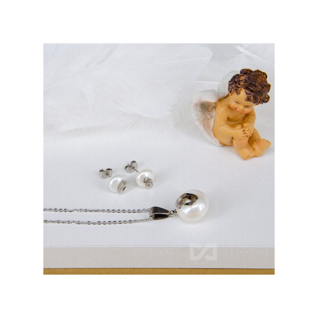 Set - naušnice + lančić biser Gospa i dijete - 52-3A
