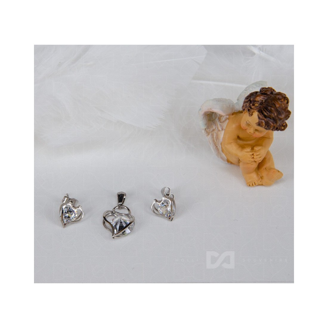 Set - naušnice + privjesak Kristal u srcu - 52-7C